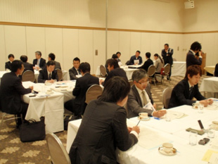 9月に実施した青年部活動の実態把握(アンケート)結果では、青年部会員の減少、高齢化など共通する課題を抱えている団体が多く見受けられ、このような現状を打破するきっかけとなるべく、次世代の組合組織と地域経済を担う若手経営者等による組合青年部活動の活性化のため、『青年部連携交流会』を開催致し、基調講演(青年経営者の取組み事例)や、異業種の同世代とのグループディスカッションを通じて、「幅広い視野と人脈づくりの場」として活用してもらおうという企画です。